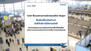 การบินพลเรือน แจงสถานการณ์ชายแดนไทย–กัมพูชา ยืนยันเที่ยวบินยังให้บริการได้ตามปกติ ประสานหน่วยงานความมั่นคงดูแลความปลอดภัยสูงสุด 08/12/2025 15:35