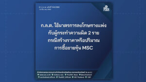 ก.ล.ต. ฟันโทษทางแพ่งผู้กระทำความผิด 2 ราย กรณีปั่นราคาหุ้น MSC สั่งปรับหนักกว่า 249.8 ล้านบาท 25/12/2025 18:45