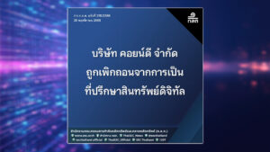 ก.ล.ต. สั่งเพิกถอนใบอนุญาต บริษัท คอยน์ดี จำกัด การเป็นที่ปรึกษาสินทรัพย์ดิจิทัล