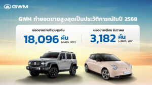 GWM สร้างสถิติยอดขายสูงสุดเป็นประวัติการณ์ ปิดปี 2568 ทะลุ 18,096 คัน นำทัพโดย TANK 300 และ ORA Good Cat 08/01/2026 22:00