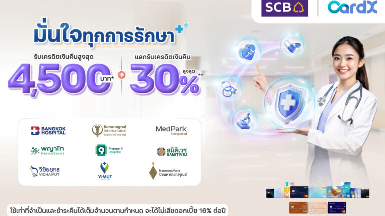 CardX ผนึกพันธมิตร 9 โรงพยาบาลชั้นนำ ส่งแคมเปญ “มั่นใจทุกการรักษา” มอบเครดิตเงินคืนสูงสุด 4,500 บาท และแลกรับเครดิตเงินคืนสูงสุด 30%