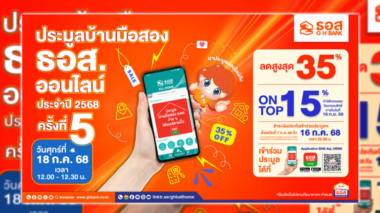 ธอส.เตรียมจัดประมูลบ้านมือสองออนไลน์ ปี 68 ผ่านแอปฯ GHB ALL HOME นำบ้าน คอนโดมือสองทำเลดี ลดราคาสูงสุด 35% 18 ก.ค.นี้
