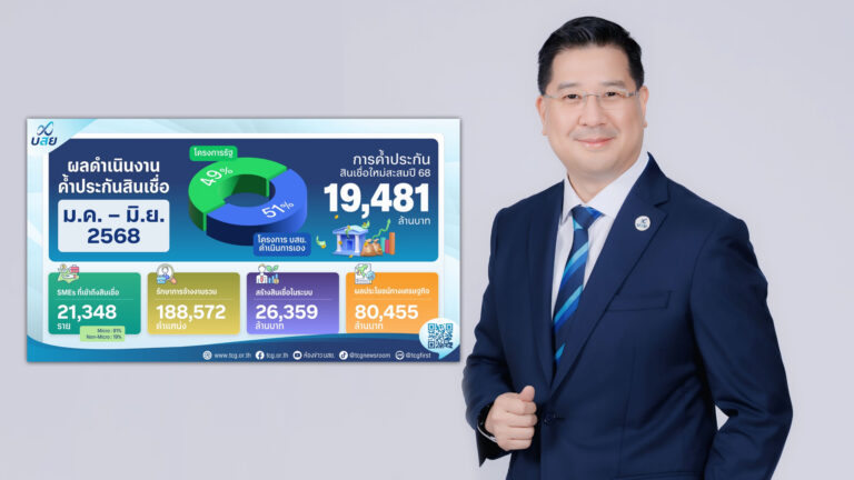 บสย. เผยยอดค้ำประกันครึ่งปีแรก 2568 แตะ 1.94 หมื่นล้านบาท ช่วย SME เข้าถึงสินเชื่อกว่า 2 หมื่นราย หนุนเศรษฐกิจกว่า 80,000 ล้าน