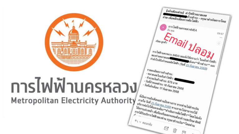 การไฟฟ้านครหลวง เตือนภัย มิจฉาชีพส่ง Email ปลอม หลอกลวงจากแจ้งประชาชนค้างชำระค่าไฟฟ้า แนะเลือกใช้บริการ MEA e-Service