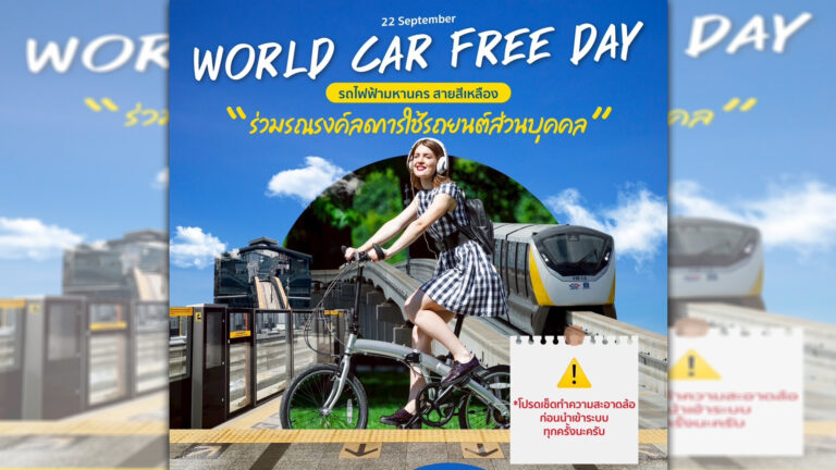 รฟม. จัดกิจกรรม World Car Free Day 2025 จักรยานและสกู๊ตเตอร์ไฟฟ้าที่พับได้ ขึ้น MRT ฟรี 4 สาย สายสีน้ำเงิน สีม่วง สีเหลืองและสีชมพู 22 ก.ย.นี้