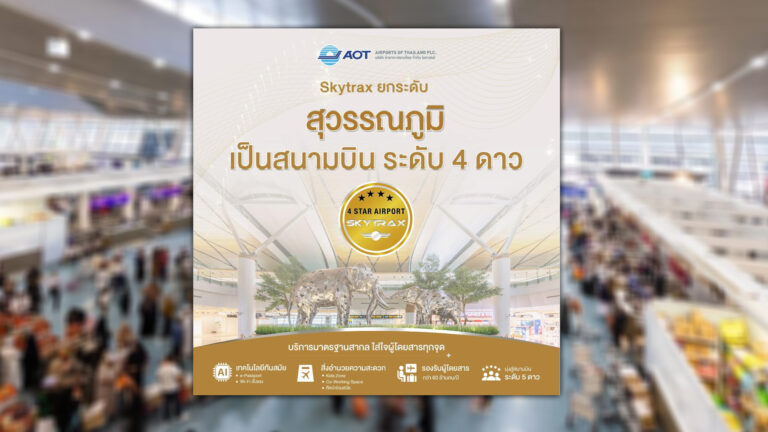 ท่าอากาศยานสุวรรณภูมิได้รับการยกระดับเป็นสนามบินระดับ 4 ดาวจากการประกาศของ Skytrax