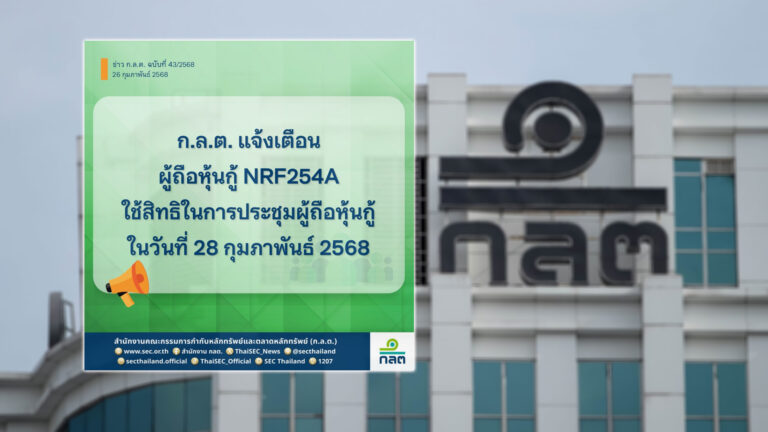 ก.ล.ต.แจ้งผู้ถือหุ้นกู้ NRF ร่วมโหวตวาระยืดหนี้ 2 ปี แบ่งจ่ายเงินต้น ในวันที่ 28 ก.พ.นี้ เพื่อให้ได้ข้อมูลครบถ้วนและเพียงพอ