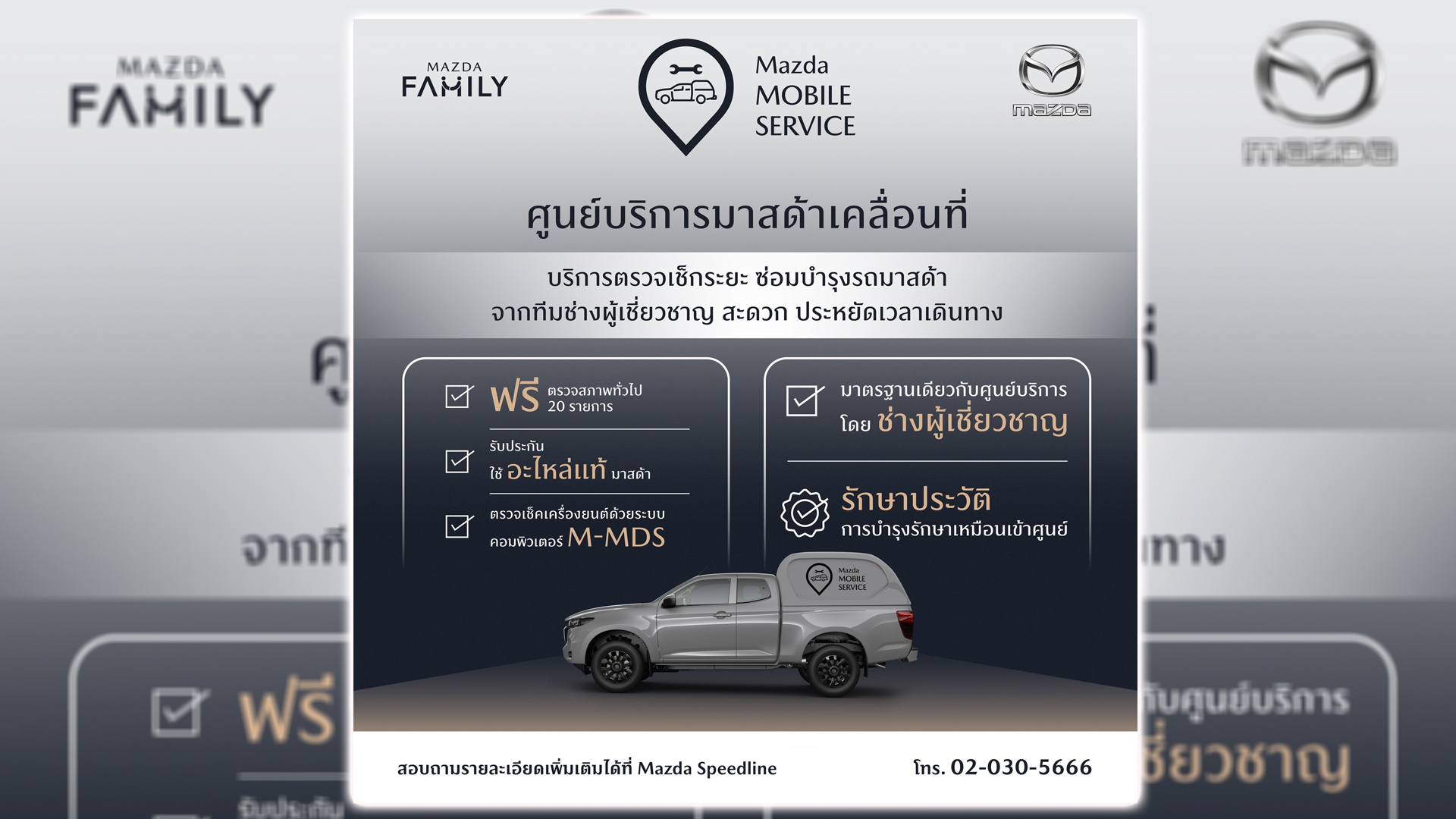 มาสด้า ขยายการรับประกันคุณภาพ เพิ่มความคุ้มครองนาน 7 ปี ยกระดับความสะดวกให้ลูกค้าด้วย “MAZDA MOBILE SERVICE” ศูนย์บริการมาสด้าเคลื่อนที่