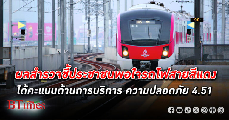 ผลสำรวจเผย ประชาชนพอใจการบริการและความปลอดภัย รถไฟฟ้าสายสีแดง คะแนนเต็ม 5 ได้ 4.51