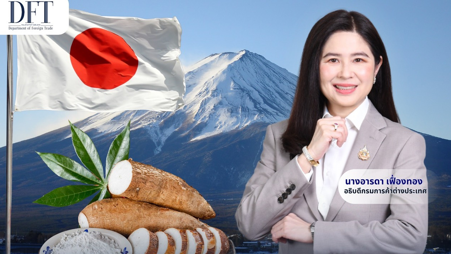 “ตลาดประเทศญี่ปุ่นให้ความสำคัญกับเรื่องคุณภาพและสุขภาพเป็นอย่างยิ่ง ซึ่งมันสำปะหลังไทยตอบโจทย์ในทุกประการ เนื่องจากสินค้ามันสำปะหลังไทยมีชื่อเสียงด้านคุณภาพในระดับโลกมาอย่างยาวนาน ไม่ว่าจะเป็นมันอัดเม็ดที่นำไปใช้ในสูตรอาหารสัตว์ หรือแป้งมันสำปะหลังที่นำไปใช้ในหลากหลายอุตสาหกรรมต่อเนื่อง นอกจากนี้ ยังได้รับทราบความคิดเห็นและข้อเสนอแนะเชิงลึกจากผู้ผลิตและผู้นำเข้าในประเทศญี่ปุ่นจากในอุตสาหกรรมดังกล่าวซึ่งให้ความสนใจในสินค้ามันสำปะหลังของไทยเป็นอย่างยิ่งโดยกรมฯ จะนำข้อมูลดังกล่าวไปประกอบการวางแผนกิจกรรมขยายตลาดการส่งออกสินค้ามันสำปะหลังในประเทศญี่ปุ่นร่วมกับภาคเอกชนของไทยต่อไป อีกทั้ง ยังได้รับการตอบรับจากตลาดใหม่อย่างตลาดสัตว์เลี้ยงซึ่งถือเป็นสัญญาณอันดีว่าสินค้ามันสำปะหลังไทยมีศักยภาพเป็นอย่างยิ่งในการแปรรูปเป็นสินค้าที่มีมูลค่าเพิ่มสูงขึ้นเพื่อตอบโจทย์ให้กับผู้บริโภคในอุตสาหกรรมปลายทาง ยิ่งไปกว่านั้น แนวทางการพัฒนาสินค้าเกษตรนวัตกรรมร่วมกันระหว่างผู้ประกอบการญี่ปุ่นกับผู้ประกอบการไทยเพื่อตอบสนองต่อความต้องการในอุตสาหกรรมการรับมือและป้องกันภัยพิบัติของญี่ปุ่นโดยใช้สินค้ามันสำปะหลังจากไทย ยังถือว่าเป็นจุดเริ่มต้นที่มีศักยภาพสำหรับการขยายตลาดสินค้าเกษตรนวัตกรรมของไทยในประเทศญี่ปุ่นในระยะยาวได้ โดยเป็นการต่อยอดจากสินค้ามันสำปะหลังที่ประเทศไทยส่งออกอยู่แล้วได้อย่างดี”