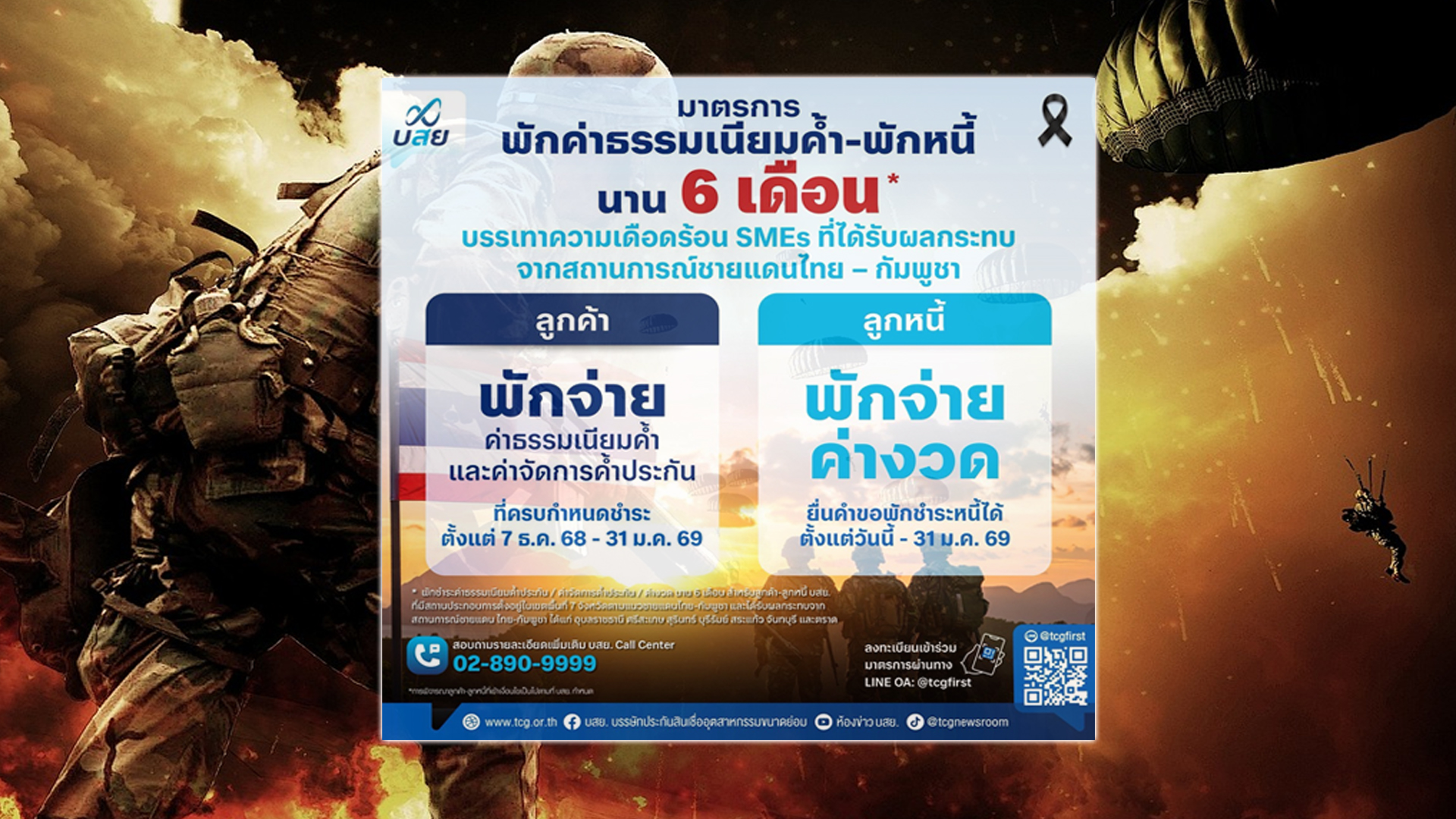 บสย.พักชำระค่าธรรมเนียม-ค่างวด 6 เดือน ​ เยียวยา ลูกค้า-ลูกหนี้ ผู้ได้รับผลกระทบสถานการณ์ชายแดนไทย-กัมพูชา