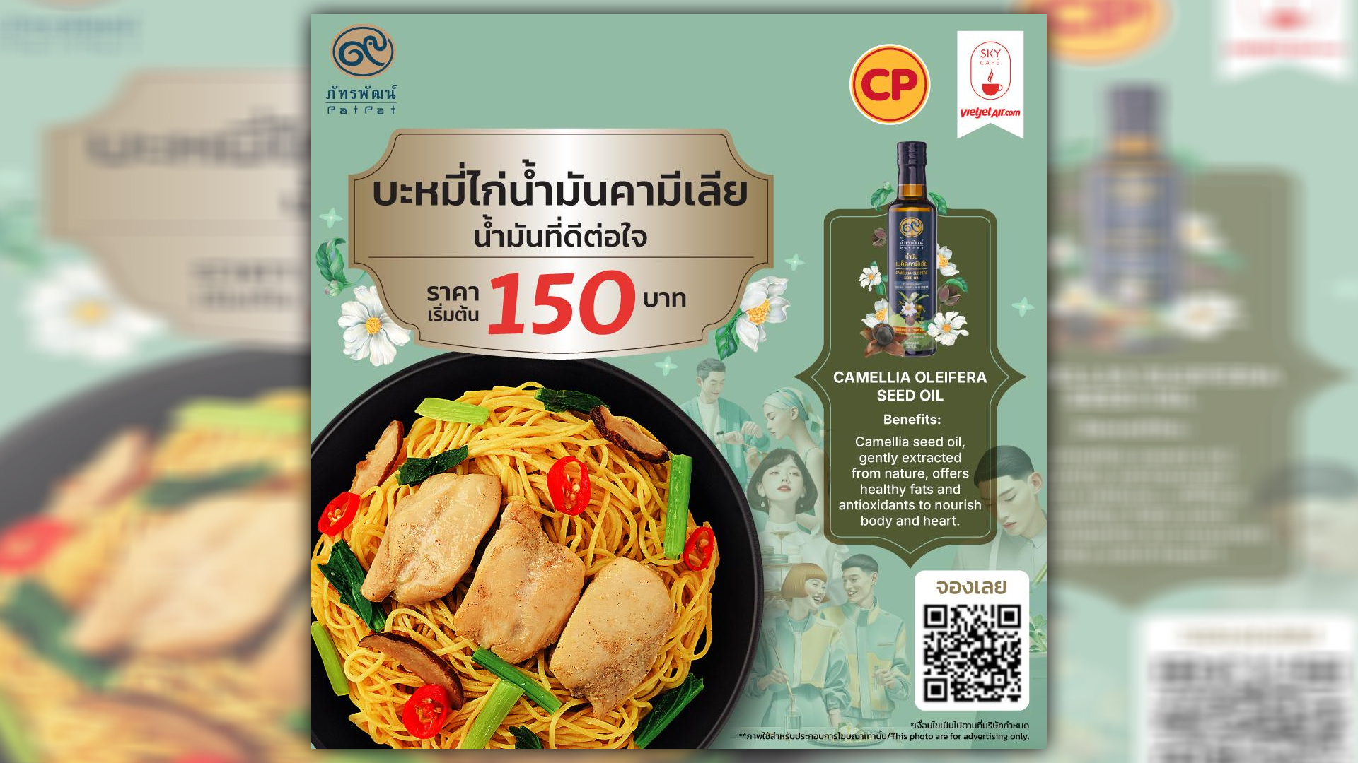 สายการบินเวียตเจ็ทไทยแลนด์เดินหน้าขับเคลื่อนแนวคิด “Fly Green” เพื่อส่งเสริมการเดินทางอย่างยั่งยืน และยกระดับประสบการณ์การบินที่ดีต่อสุขภาพ สังคม และสิ่งแวดล้อม สิ่งแวดล้อม ล่าสุดพร้อมให้บริการเสิร์ฟเมนูพิเศษ ‘บะหมี่ไก่’ สูตรเฮลท์ตี้ที่ปรุงด้วยน้ำมันเมล็ดคามีเลีย ภัทรพัฒน์ จากมูลนิธิชัยพัฒนา โดยเปิดจำหน่ายบนทุกเที่ยวบินตั้งแต่วันนี้เป็นต้นไป ตลอดจนถึงเดือนมกราคม 2569