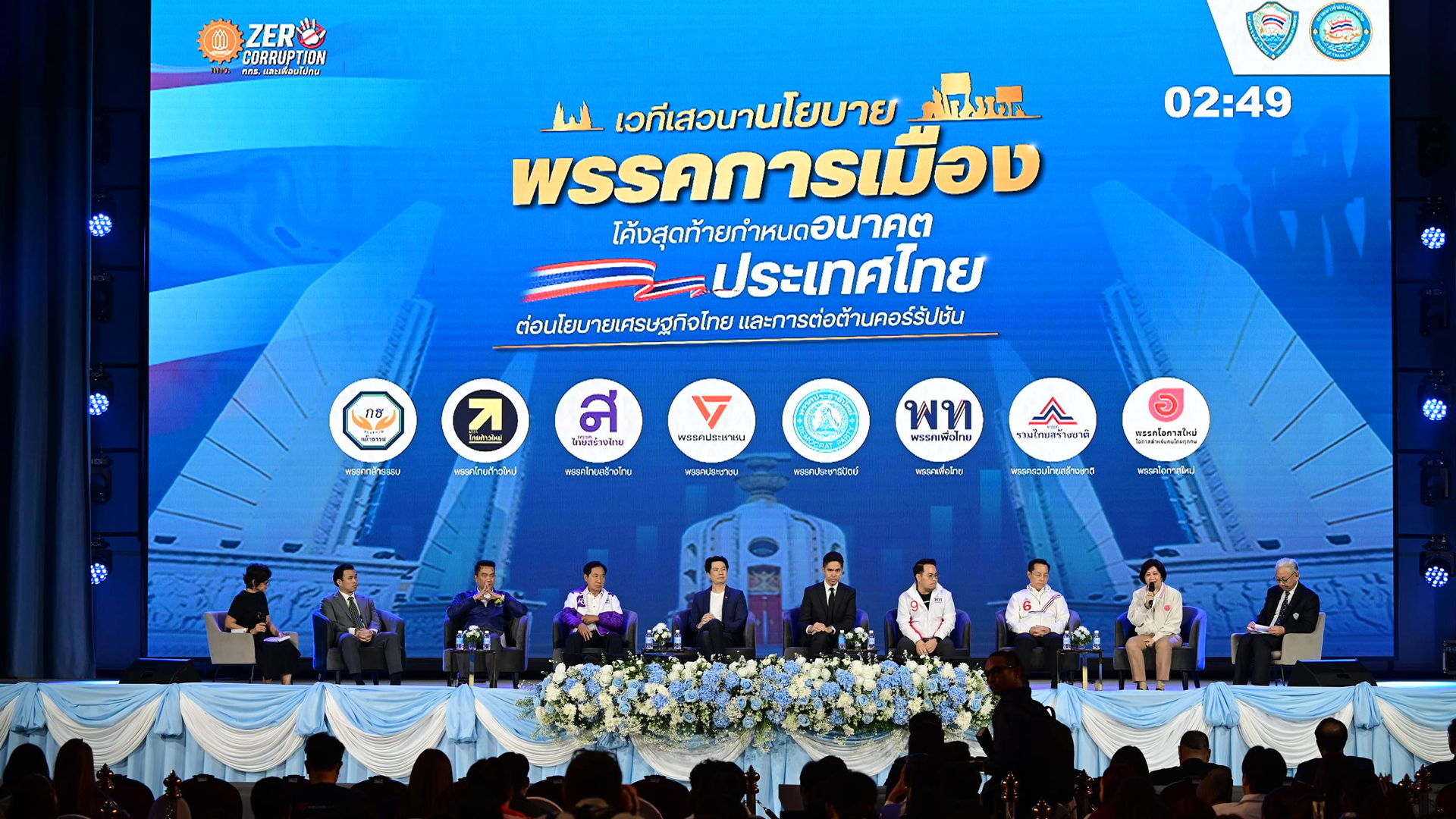 หอการค้าไทยผนึก ม.หอการค้าไทย เปิดเวทีประชันวิสัยทัศน์ 8 พรรคการเมือง  ชูเศรษฐกิจโปร่งใส ต้านคอร์รัปชัน โค้งสุดท้ายก่อนเลือกตั้ง