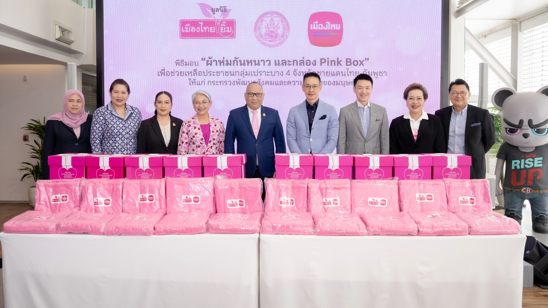 เมืองไทยประกันชีวิตและมูลนิธิเมืองไทยยิ้ม ร่วมเดินหน้าสานต่อภารกิจ “ส่งต่อความอบอุ่น สู่หัวใจคนไทย” มอบผ้าห่มกันหนาวและกล่อง “Pink Box” เพื่อช่วยเหลือประชาชนกลุ่มเปราะบางให้แก่กระทรวงการพัฒนาสังคมและความมั่นคงของมนุษย์ ภายใต้โครงการ “พม.ใกล้คุณ” ร่วมบรรเทาทุกข์และเตรียมพร้อมรับมือภัยหนาวในช่วงปลายปี สะท้อนเจตนารมณ์ขององค์กร ในการส่งต่อความห่วงใยและสร้างรอยยิ้มให้กับสังคมไทยอย่างยั่งยืน