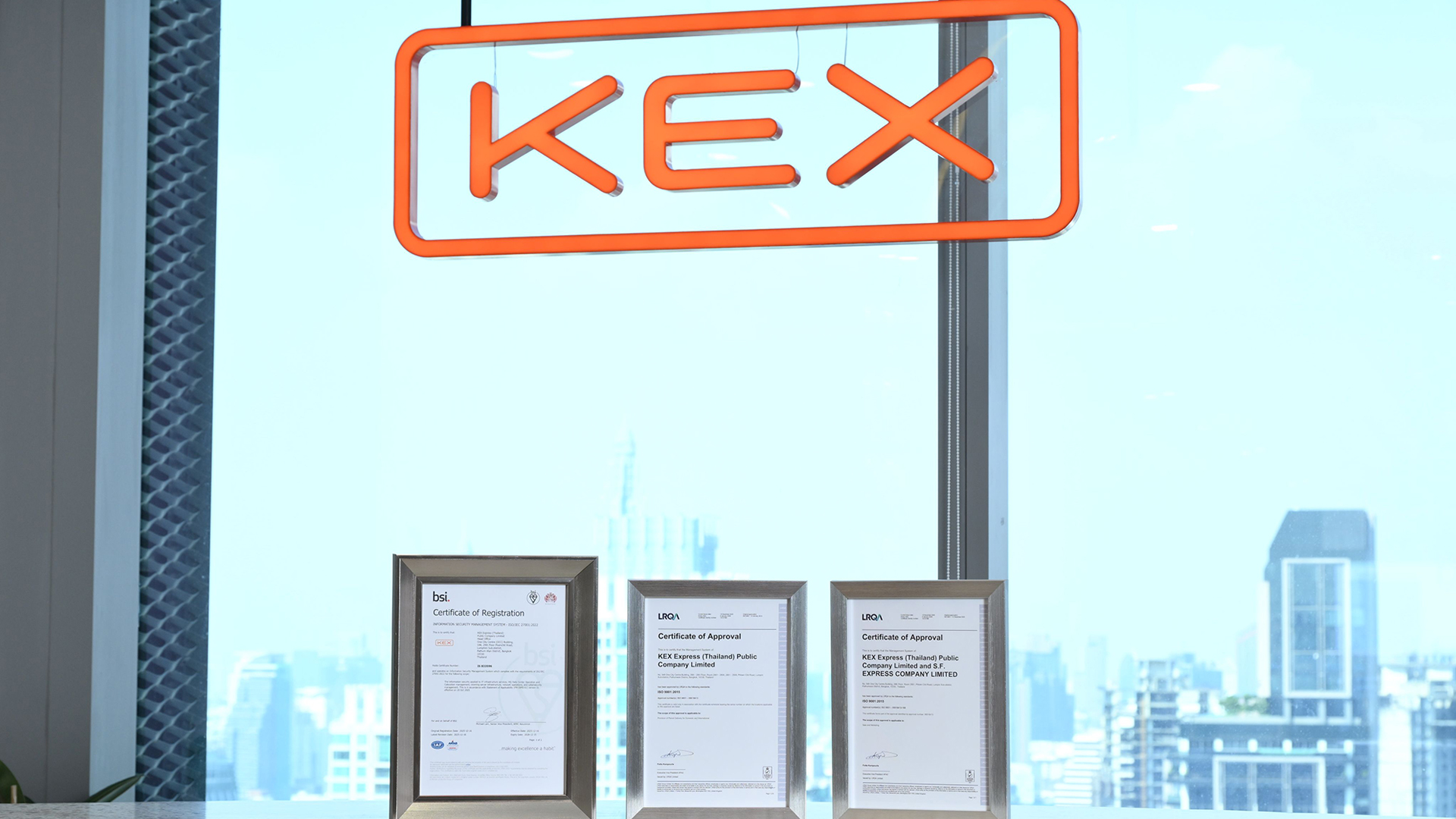 บริษัท เคอีเอ็กซ์ เอ็กซ์เพรส (ประเทศไทย) จำกัด (มหาชน) หรือ “KEX” ผู้นำด้านการจัดส่งพัสดุด่วนทั่วไทยและ SF Express ผู้ให้บริการด้านโลจิสติกส์ครบวงจรชั้นนำในประเทศจีน และเป็นบริษัทขนส่งด่วนที่ใหญ่เป็นอันดับสี่ของโลก* ประกาศความสำเร็จครั้งสำคัญในการยกระดับมาตรฐานการให้บริการ ด้วยการได้รับการรับรองระบบคุณภาพ ISO ตามมาตรฐานสากล โดยเฉพาะ KEX ที่ก้าวขึ้นเป็นบริษัทเดียวในอุตสาหกรรมโลจิสติกส์ไทยที่ครอง ISO ครบทั้งด้านระบบบริหารคุณภาพและความมั่นคงปลอดภัยสารสนเทศ ตอกย้ำความเป็นผู้นำ Logistics Tech Company ที่แท้จริง